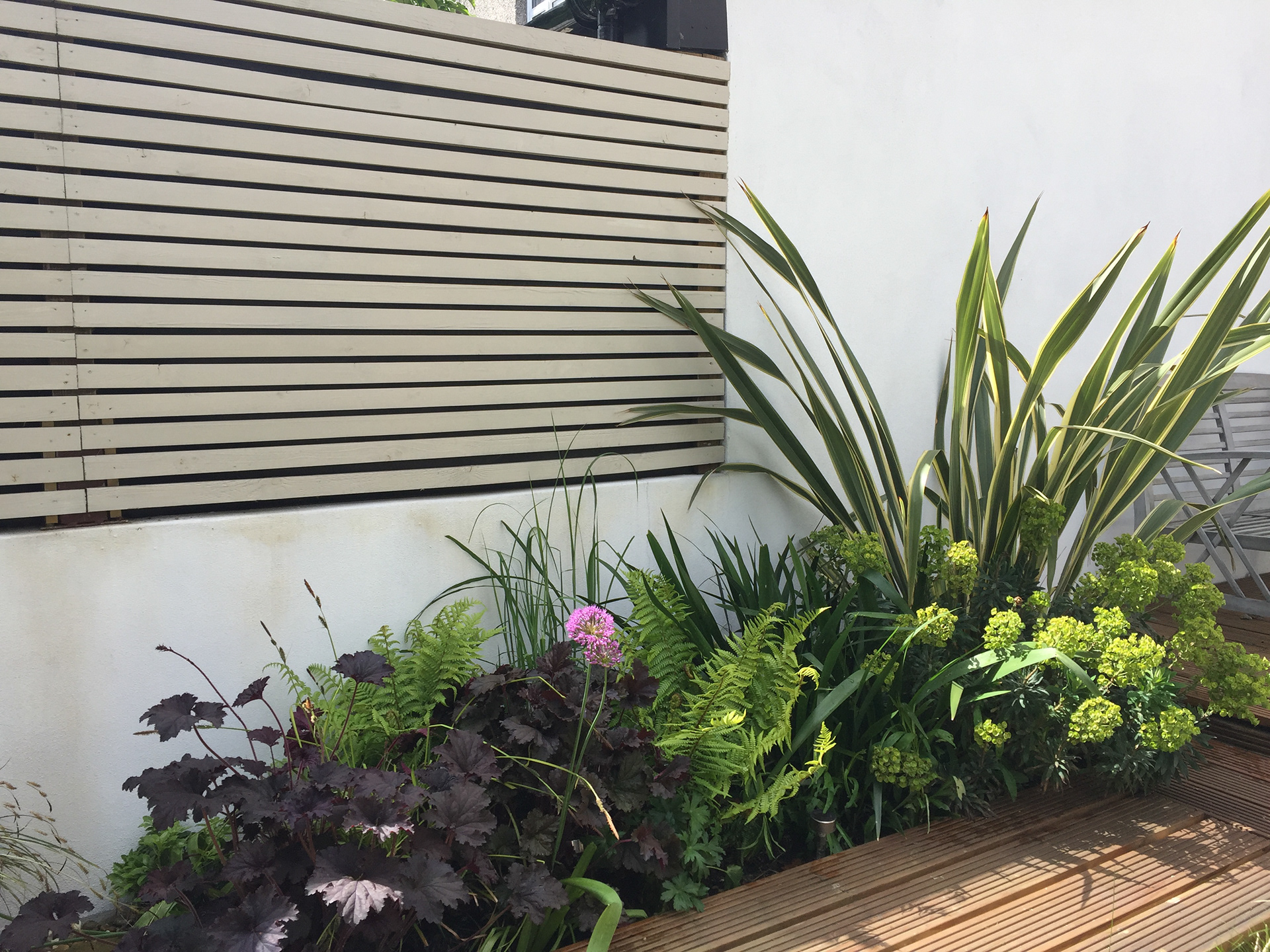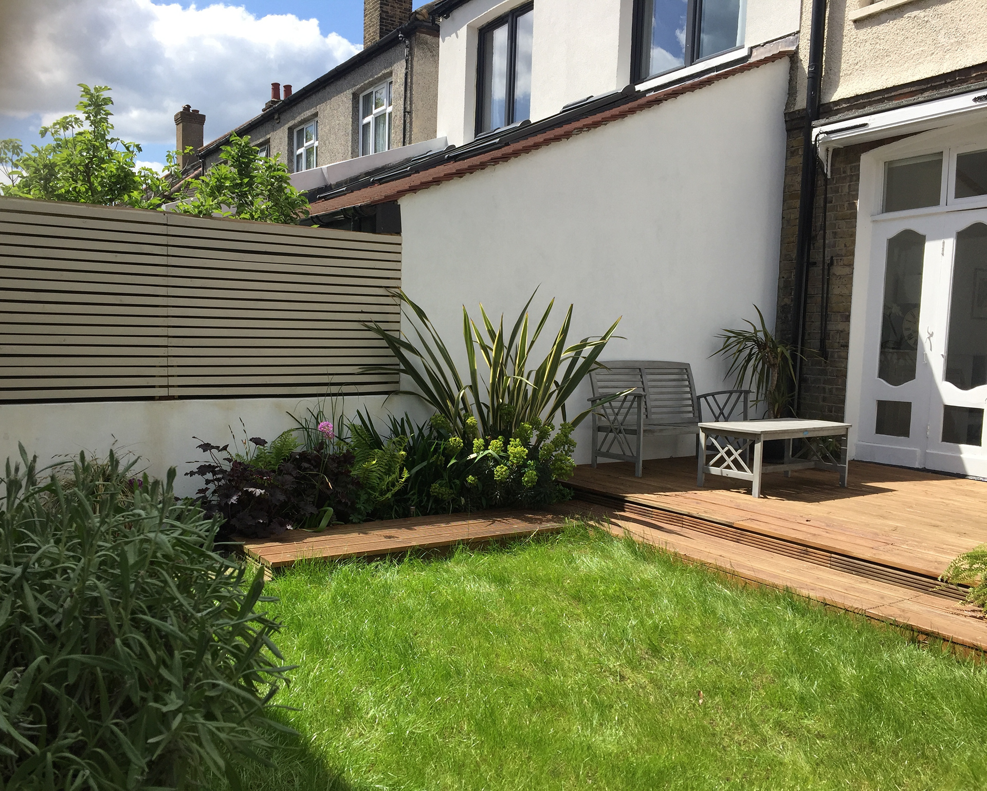 Re-planting was introduced to infuse new life and greenery into the space without a substantial financial investment. The addition of screening elements and the application of a fresh coat of paint to the fences contributed to a bright and contemporary aesthetic, further enhancing the visual appeal of the garden.